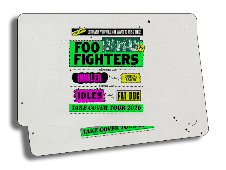 Bitte gib auf der nächsten Seite deine Gewinndaten ein und gewinne 2 Tickets für die Foo Fighters – Take Cover Tour 2026!